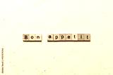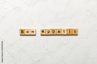 Bon Appetit word written on wood block. Bon Appetit text on cement table for your desing, concept
