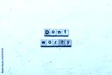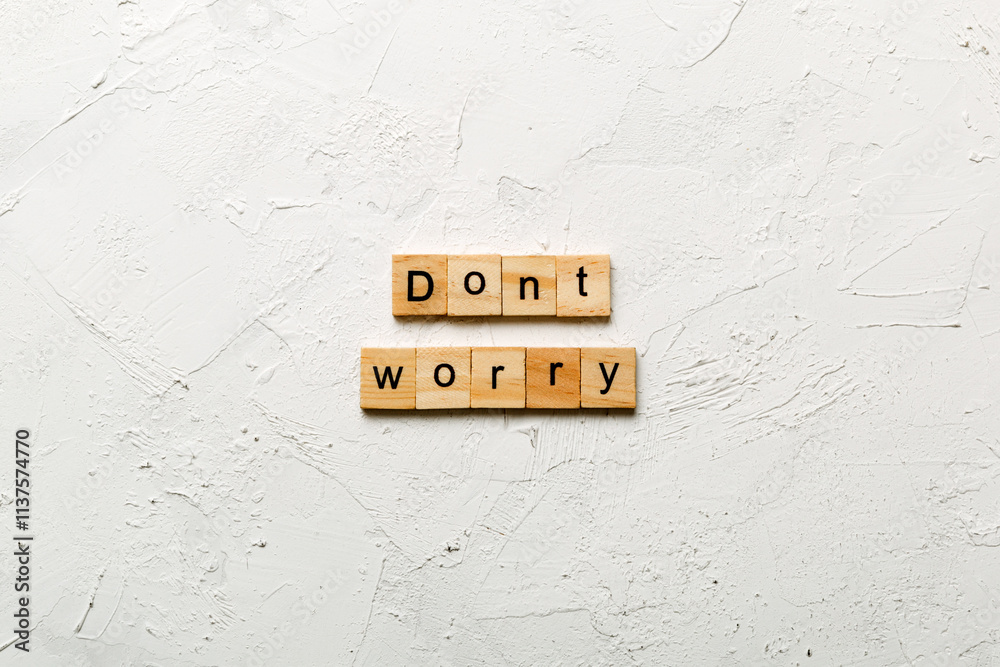 Don't worry word written on wood block. Don't worry text on cement table for your desing, Top view concept