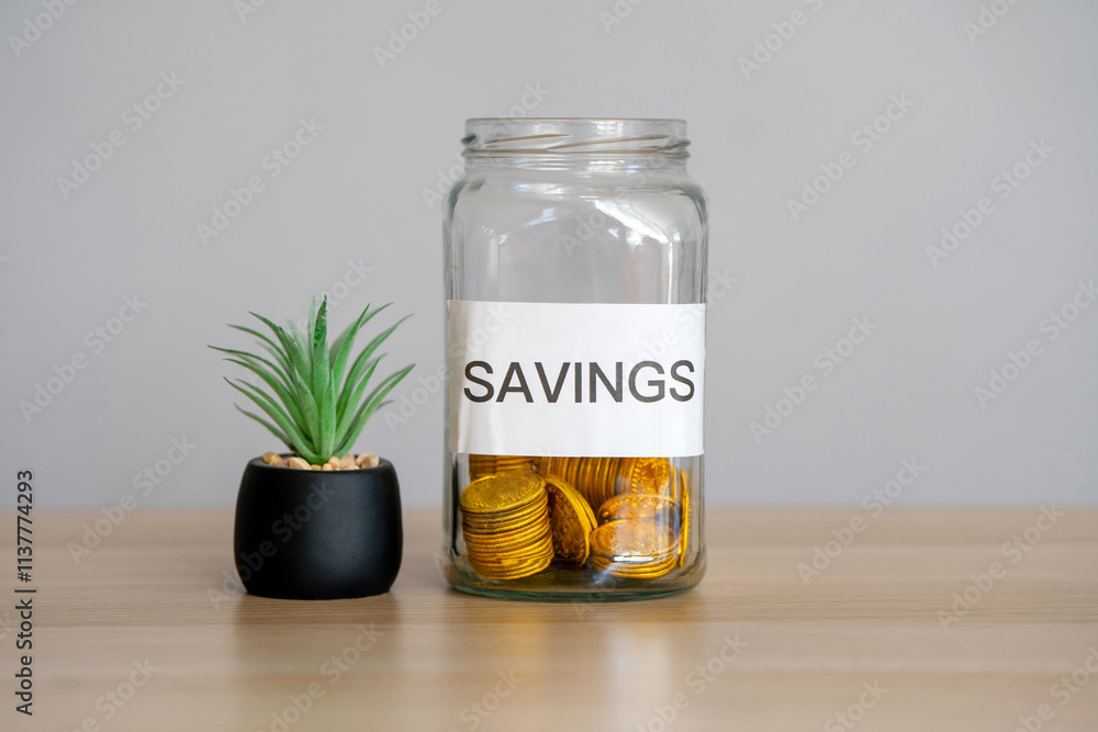 Bank of coins Savings and flower. Home budget and fund. Money management. Income that set aside for future use. Financial security, prepare for emergencies.