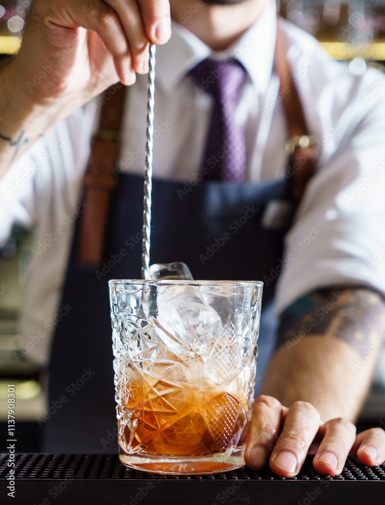 Bartender making a cocktail at the bar