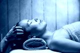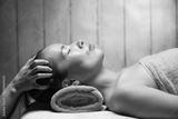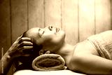 若いアジア人女性はヘッドマッサージを受けています。