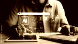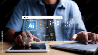 AI Artificial Intelligence. Businessman using AI technology for data analysis, coding computer language with digital brain, Programming Web Development Coding Concept.