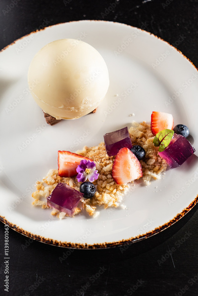 white chocolate ball with fresh fruits