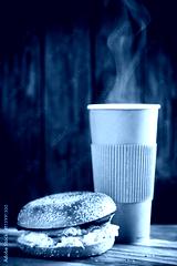 Bagel with bacon and egg