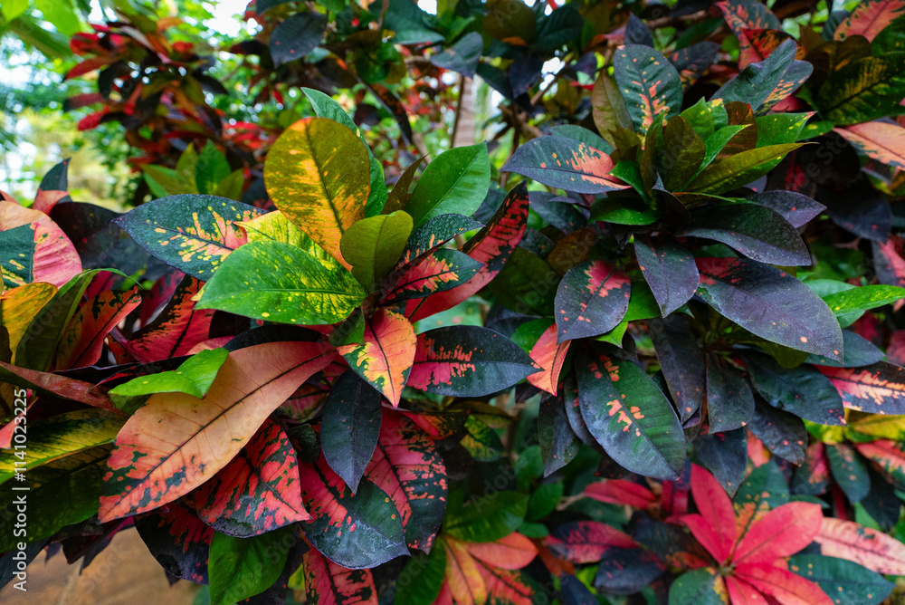 Fire croton plant. Codiaeum variegatum.