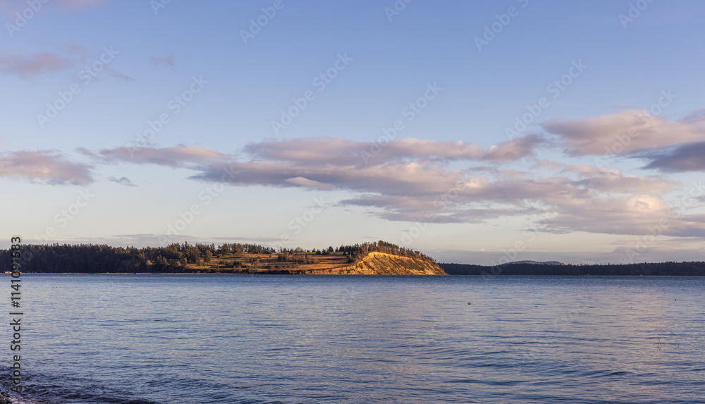Scenic Sunrise Over Vancouver Island Coastline With Serene Waters