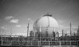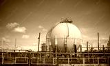 Industrial chimneys likely part of a power gas plant or oil industrial facility is industrial atmosphere with a focus on the infrastructure.