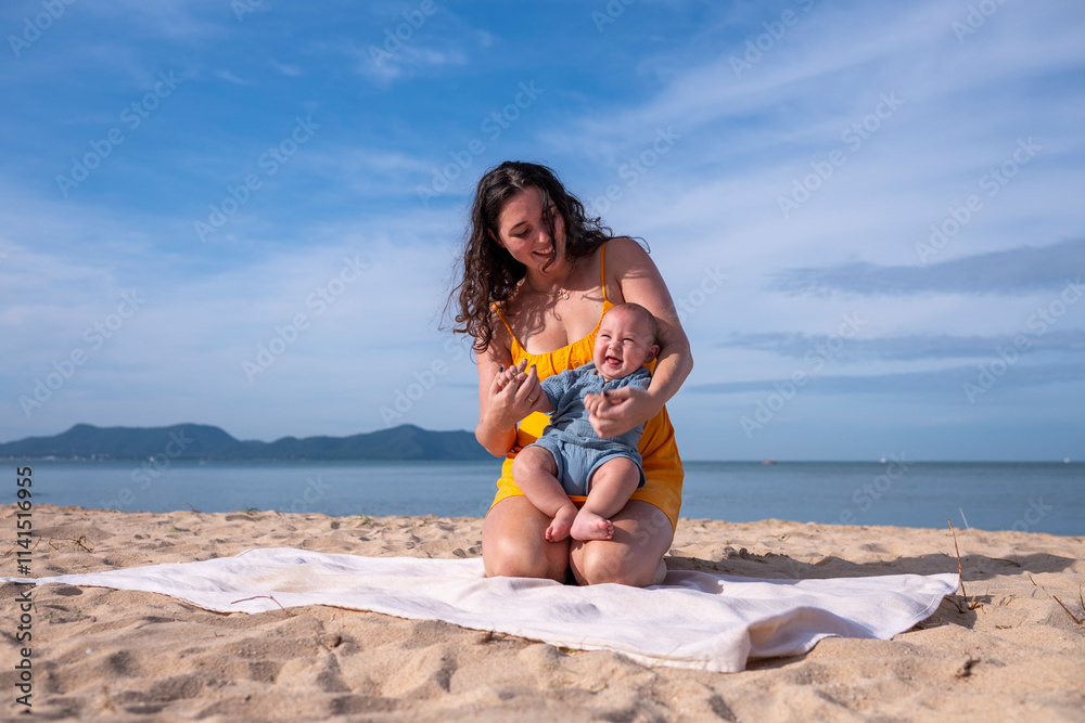 Happiness sense mother and child during daytime holding a baby arms moment between mother and child amidst nature’s beauty close connection with the natural environment lifestyle concept.