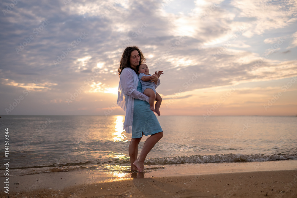 Happiness sense mother and child during daytime holding a baby arms moment between mother and child amidst nature’s beauty close connection with the natural environment lifestyle concept.
