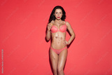 sexy woman in lingerie on a red background eating ice cream