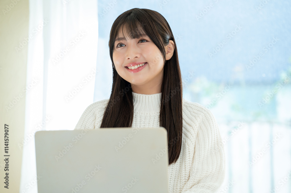 笑顔でパソコン操作をする女性