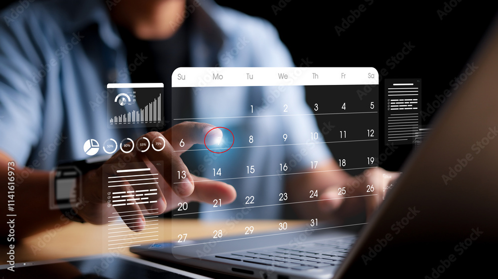 Time management concept. Businessman manages time for effective work. Secretary manages time schedule for effective work.