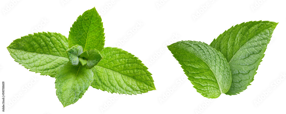 Collection of fresh mint leaves, isolated on white background