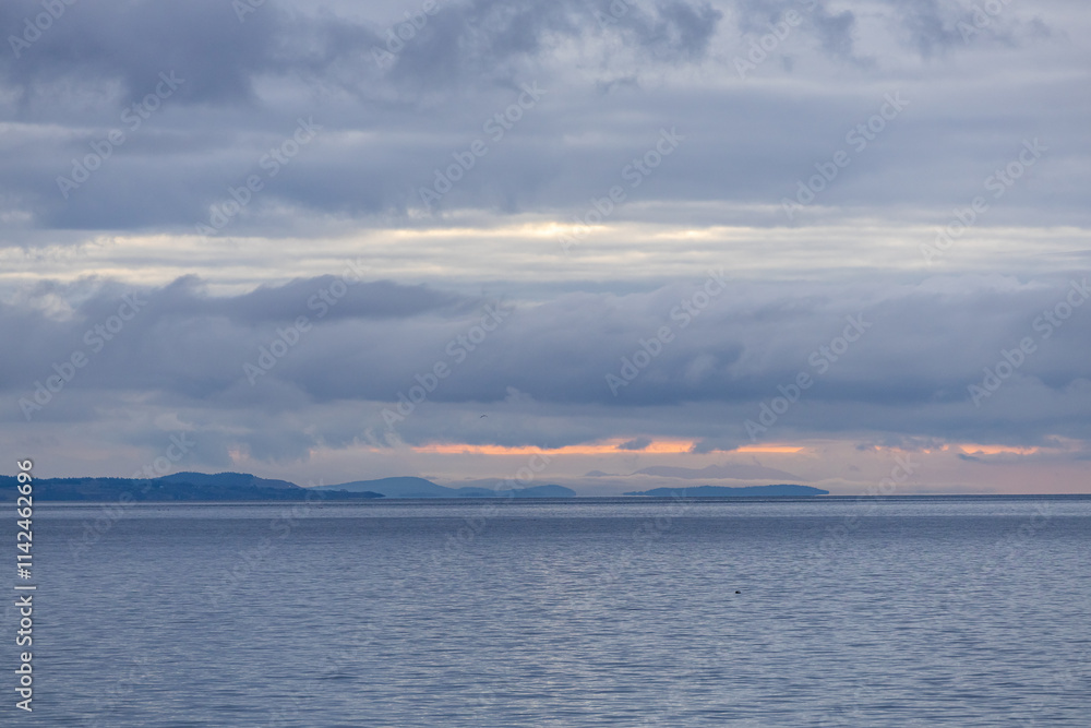 Serene Ocean Sunrise Over Vancouver Island With Vibrant Clouds