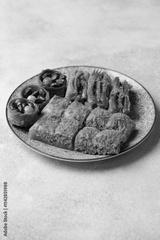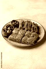Delicious assortment of traditional pastries on decorative plate showcasing rich flavors and textures