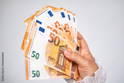 female hands hold money, count paper euro banknotes, cash payments, savings, banking, save for vacation, exchange and cashing currency