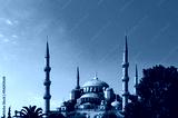 Blue Mosque in Istanbul, Turkey. View of exterior of Sultanahmet Camii. Islam religion