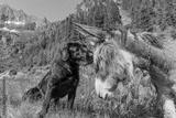 Dog kissing his donkey friend on forehead. Love story. Multicultural friendship stories.