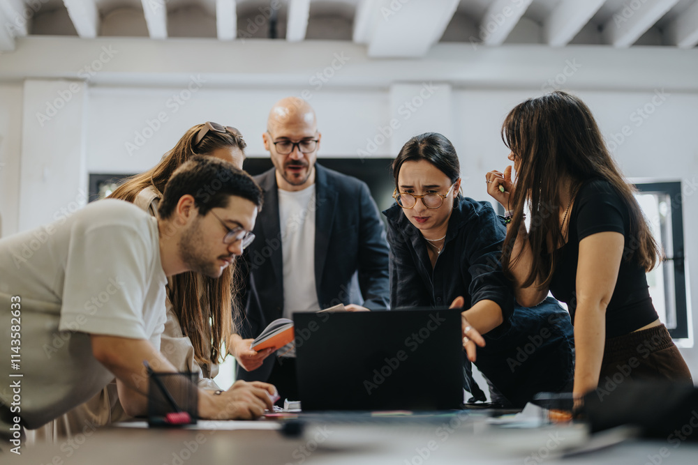 A group of engaged students collaborates on a project with guidance from their professor. The image captures teamwork, learning, and support in an educational setting.