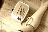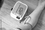 Man check blood pressure monitor and heart rate monitor with digital pressure gauge. Health care and Medical concept