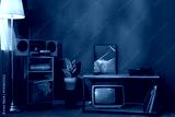 Retro tape recorder and tv standing in the room