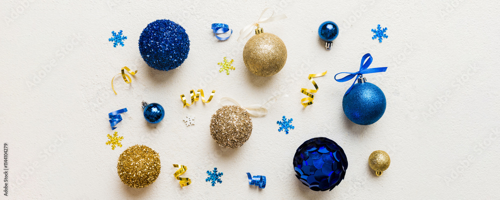 Christmas ball on colored background. decoration bauble with ribbon bow with copy space