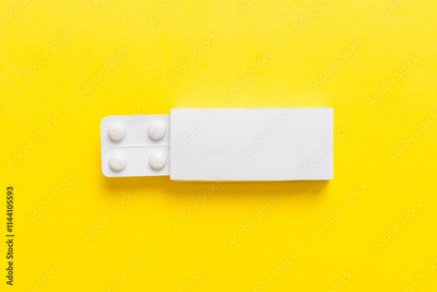 Blank White Product Package Box Mock-up. Open blank medicine drug box with blister top view