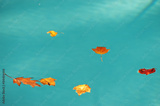 autumn leaves floating on the swimming pool