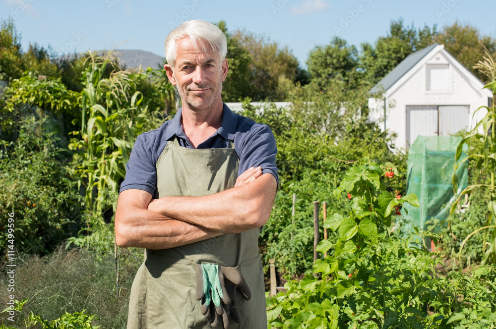Satisfied farmer in garden