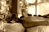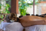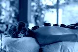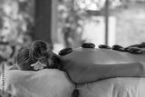 Young woman getting hot stone massage in spa salon. Beauty treat