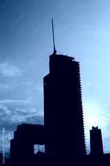 Sunset with big building construction