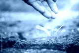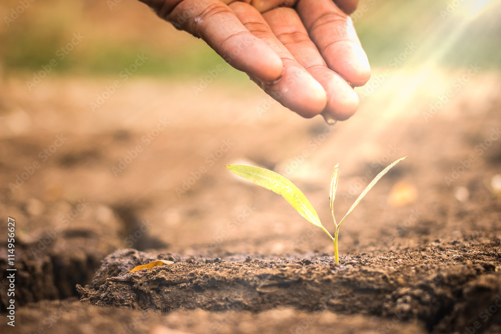 hand nurturing and watering a young plant / Love and protect nat