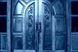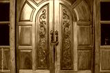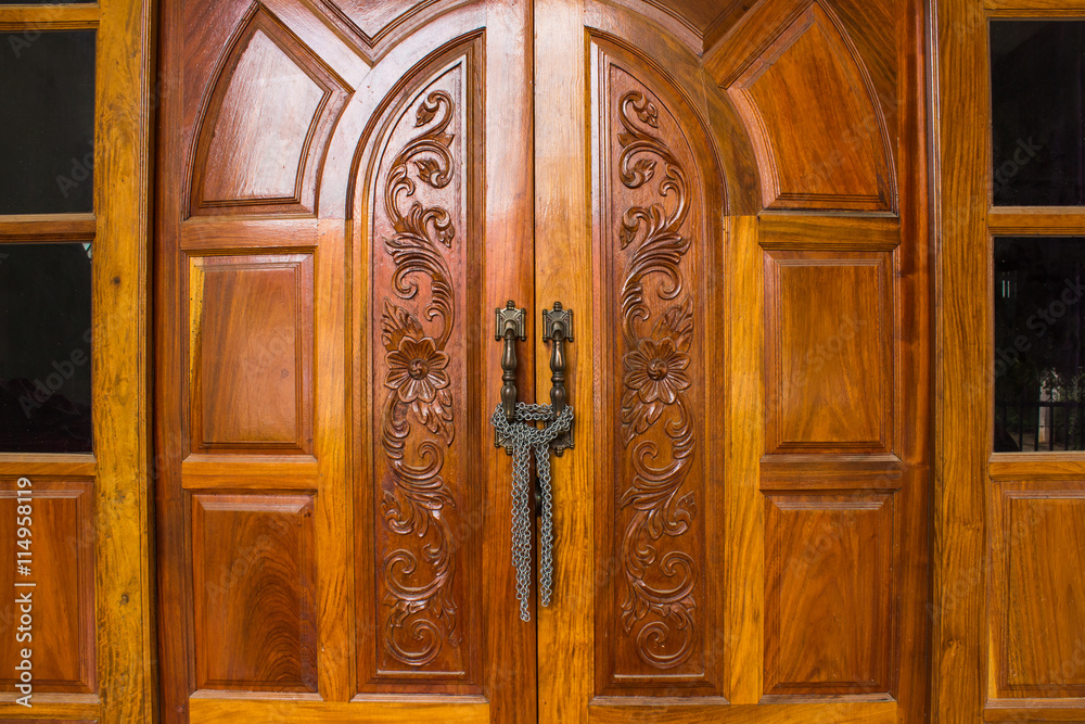 Locked wooden door.