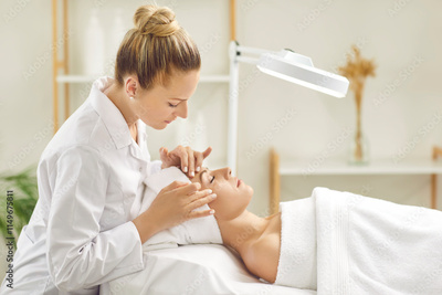 Dermatologist combines expertise and care to a facial treatment. Procedure of cosmetologist, designed to enhance skin health, reflects the dedication of a beautician professional in fostering beauty.
