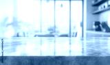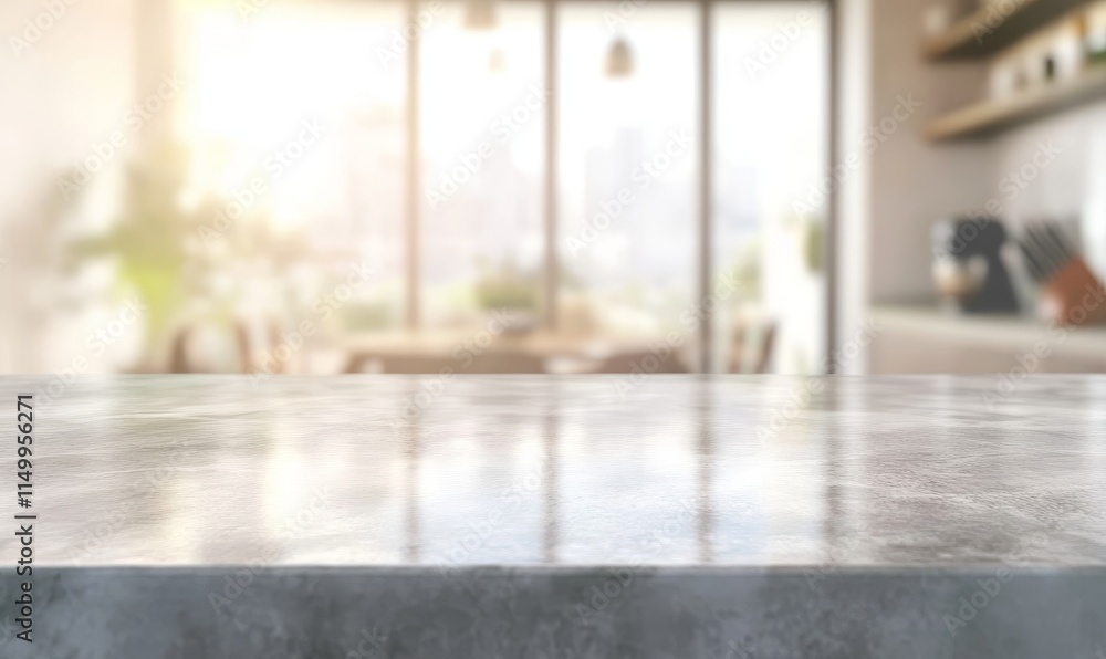 Empty kitchen counter with blurred background.