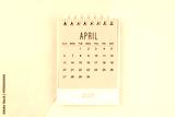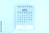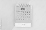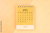 April 2025 mini desk calendar on the yellow, planning for business meeting.