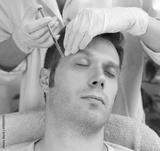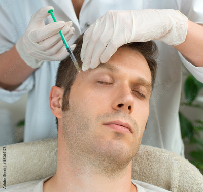 Handsome man is getting injection. Concept of aesthetic beauty.