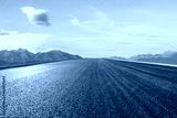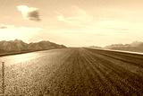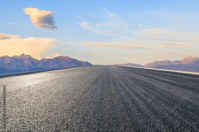 Straight asphalt road and mountain with sky clouds nature landscape at sunset. Outdoor road background.