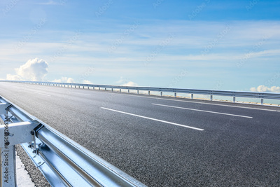 Asphalt road and sky clouds scenery under blue sky. Outdoor road background.