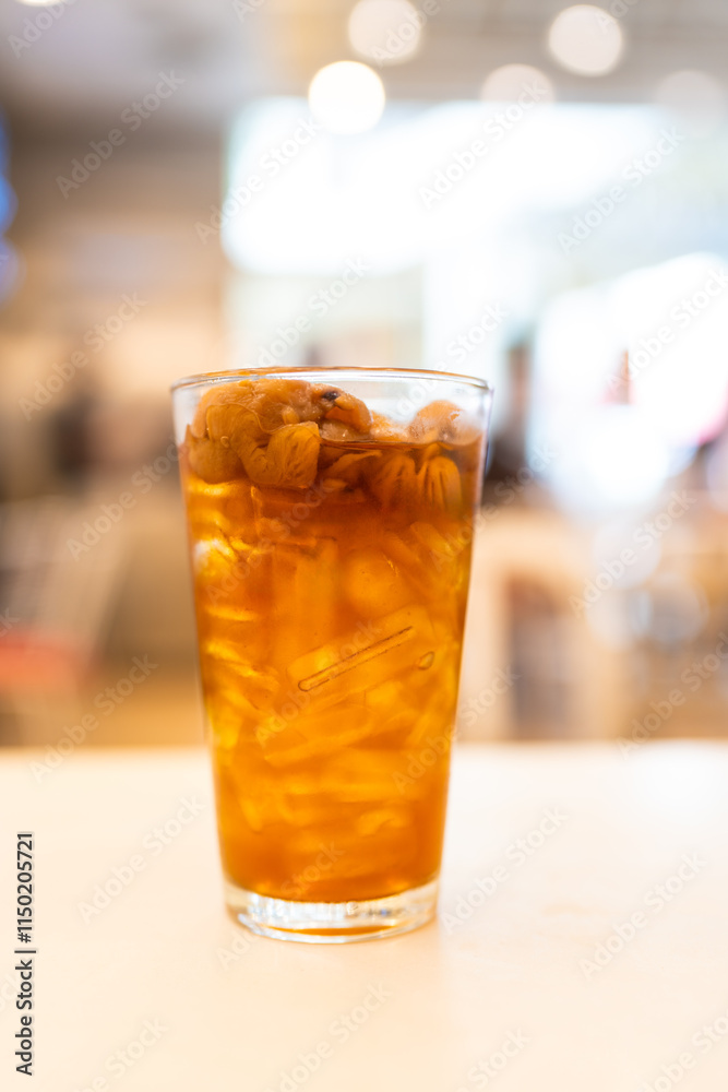 A cold drink of longan juice with ice decoration with longan fruit seedless. Drinks for quenching your thirst in hot weather.