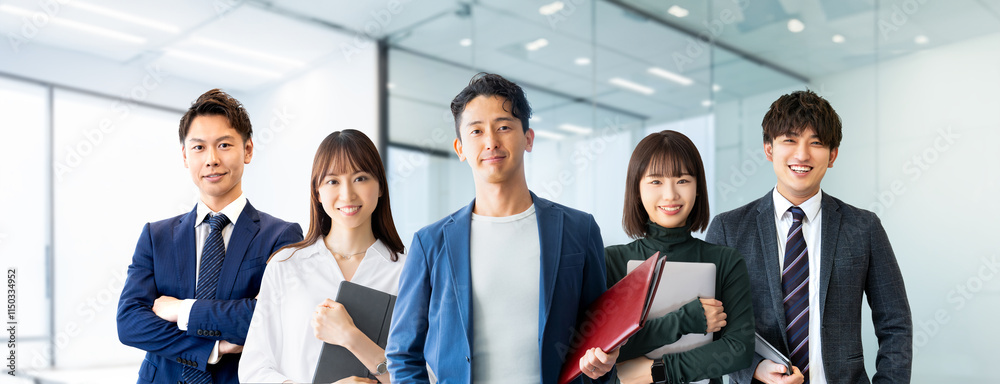 ビジネスマン男女5人のチームワークイメージ