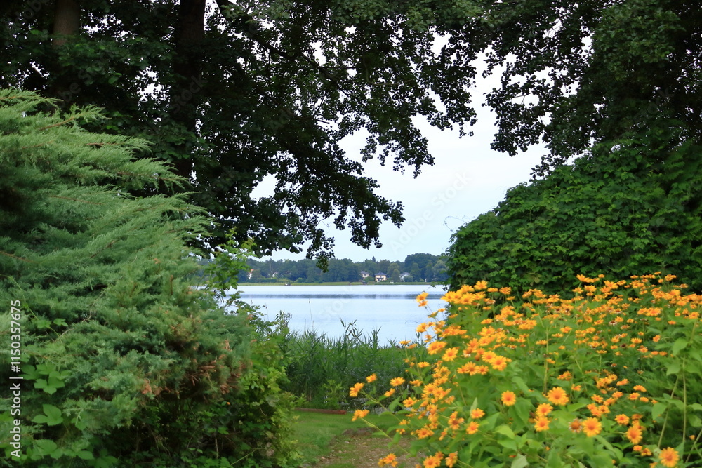 Shore area with reeds at a small lake in Wandlitz, Brandenburg in Germany