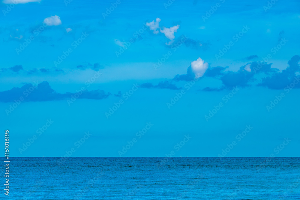 Nature of the beach and sea Summer with sunshine, sandy beaches, clear blue waters sparkling against the blue sky. On an island with good ecology and environment Background for summer vacation