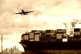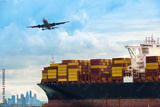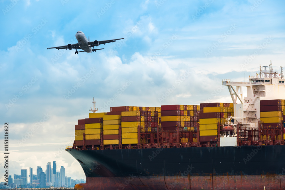 Aerial view of the freight shipping transport system cargo ship container. international transportation Export-import business, logistics, transportation industry concepts