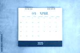 April 2025 desk calendar on gray cement wall background. Page of annual monthly calendar for plan.