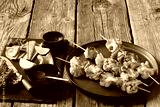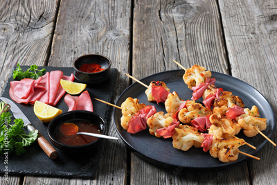 spicy cauliflower kebabs with corned beef on plate