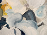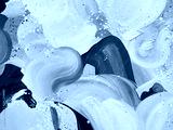 Close up of random brushed paint in blue, white, and yellow color with random cloud and wave pattern. random seamless background texture
