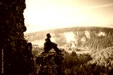 Man sitting on the top of the mountain, leisure in harmony with nature