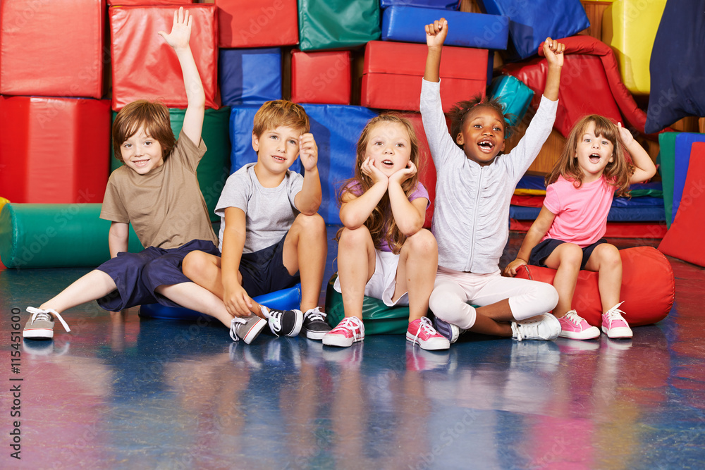 Kinder jubeln in Turnhalle