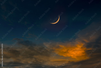 Background night sky of with crescent moon,and stars .Background Greeting card for the holy month of Ramadan of islam